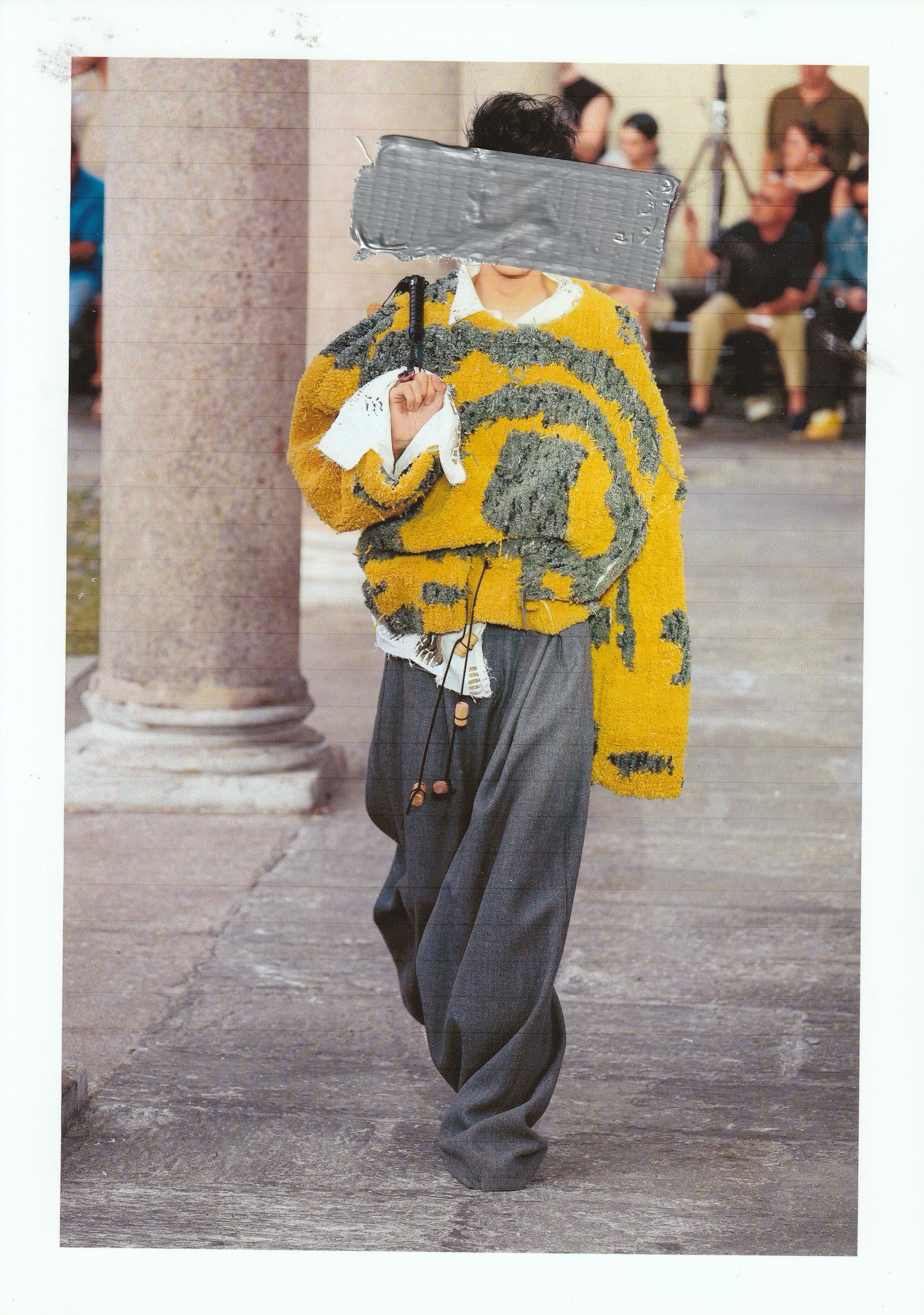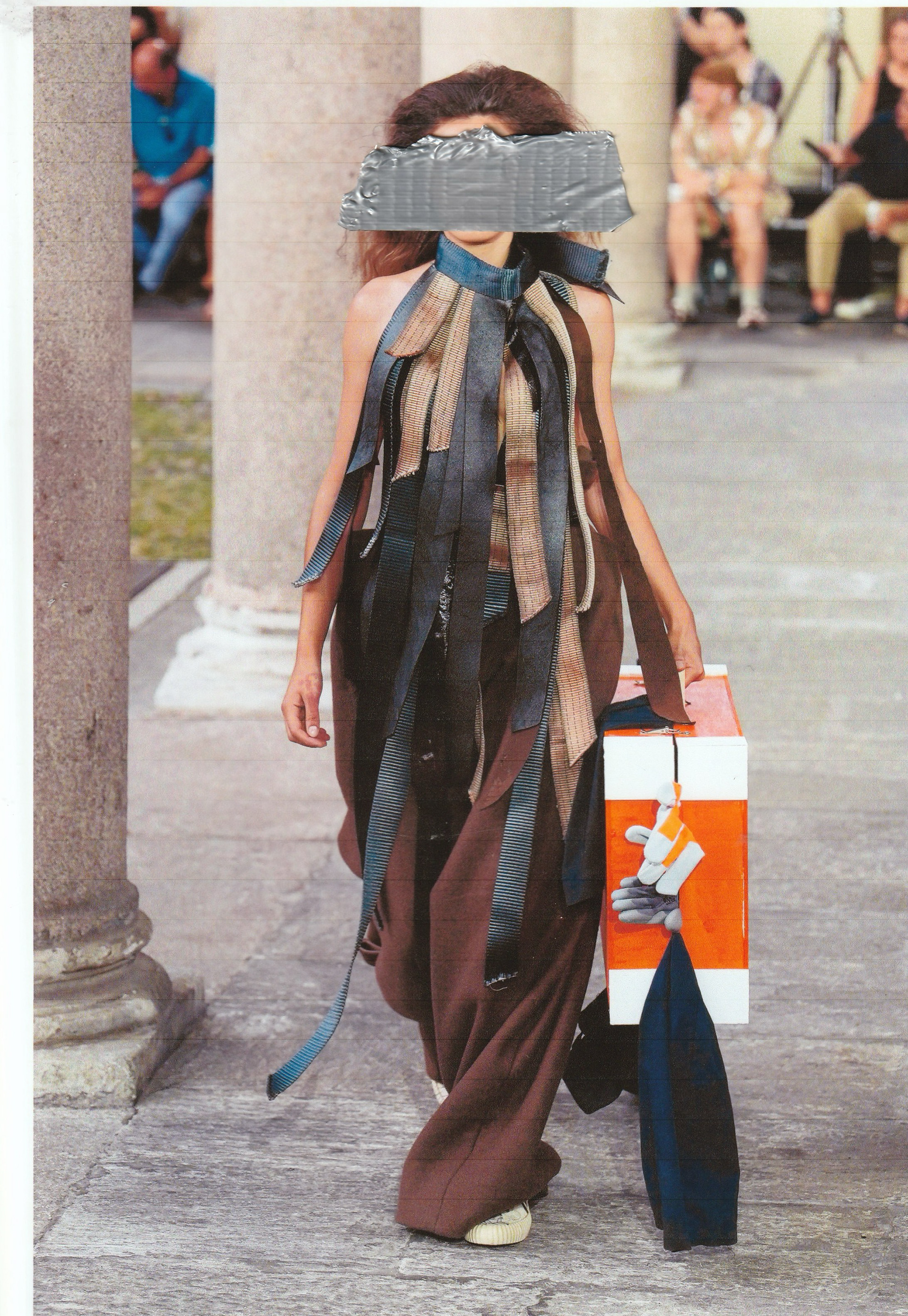 Buon viaggio, Wanda! investigates the condition of the contemporary as a missed appointment, using clothing to explore uncertainty, tension and shifting identities. Through altered silhouettes and the use of workwear materials, the project establishes a staged encounter between body and garment, where power, protection and presence are continuously negotiated. The pieces function as a meeting point between reality and constructed imagery, opening a space in which the contemporary individual confronts their own instability.